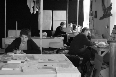 Andrea Sodomková se narodila roku 1973 v Trenčíně. V roce 1992 začala studovat na Katedře alternativního a loutkového divadla DAMU scénografii. Zúčastňovala se hodin dialogického jednání u profesora Ivana Vyskočila. Spolupracovala na vzniku organizace mamapapa a podílela se na jejích projektech v oblasti site specific (zámek Mnichovo Hradiště, 3WW3 – Čistička odpadních vod v Bubenči, LightLab na PQ 1999, práce pro Hermit v klášteře v Plasech). Absolventské představení Příběhy ve větru realizovala ve stodole na statku P. Kavana v Českém ráji. Ve volných chvílích maluje, vyřezává (samostatné výstavy: Kavárna Citadela, zámek Humprecht u Sobotky, hospodský sál u Oukropců Těchonice) a někdy i hraje (slimáka v ochotnickém představení Ze života hmyzu a Dorotu ve zpěvohře Čert a Káča). V roce 1997 potkala bratry Formany na projektu Cihelna v Třešti. Dostala příležitost připravovat říční představení Nachové plachty na lodi Tajemství a pak se suchozemskou verzí putovat po Francii. Následovala opera Philipa Glasse Kráska a zvíře pro Národní divadlo v roce 2003 (v pauze před další inscenací ilustruje) a spolupráce s rozšířeným týmem Formanů na buffopeře Dobře placená procházka opět v Národním divadle.
